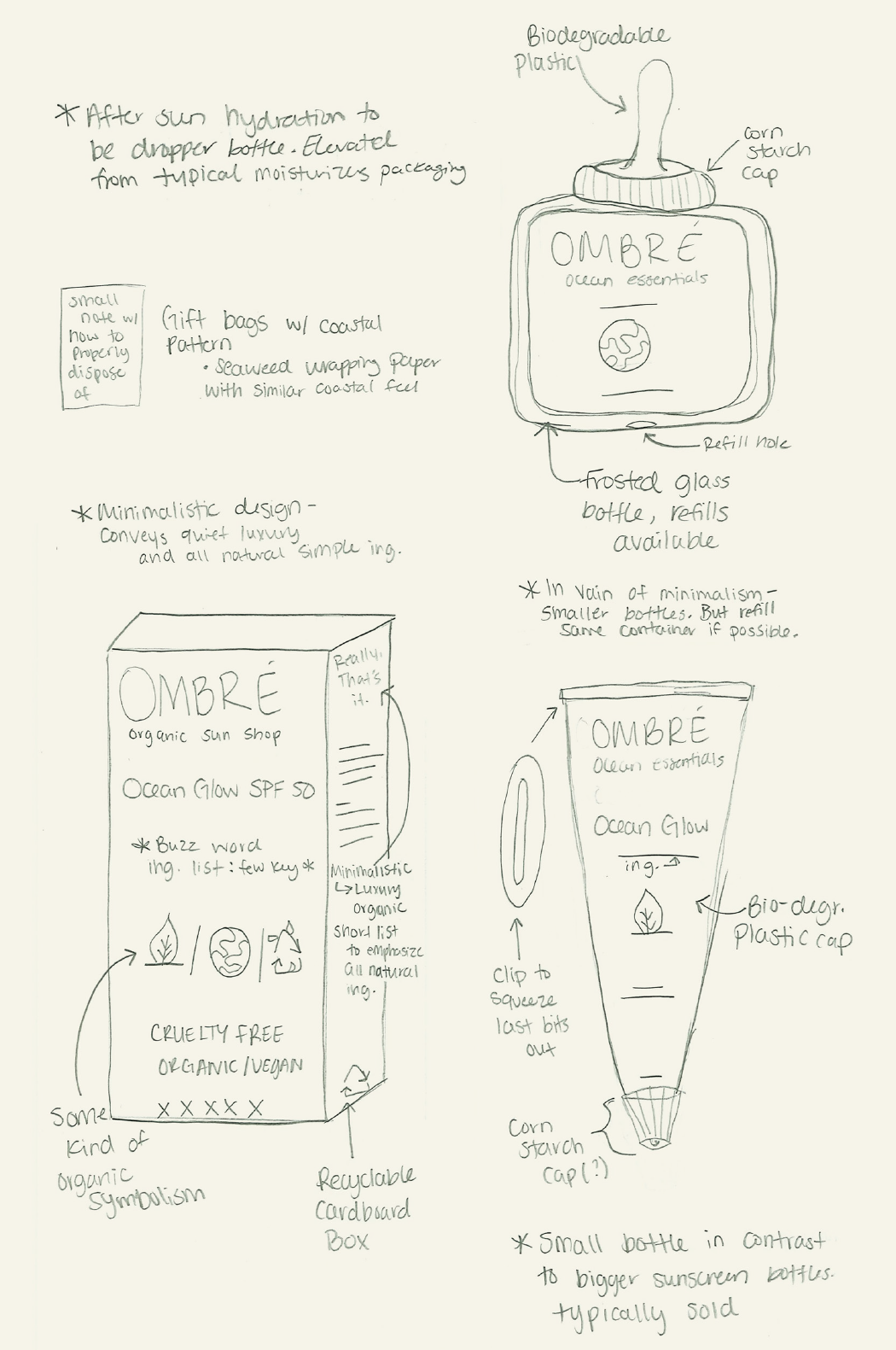 Ombre Organic Sun Shop is an organic cosmetic brand concept that is dedicated to pure beauty derived from nature. Ombre offers luxury skincare and make-up products crafted exclusively from natural and organic ingredients, free of harsh chemicals and harmful additives. Inspired by the luxurious and serene feel of this brand I began gathering inspiration for packaging that felt high quality and approachable.